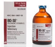 BO-SE Injection (selenium, vitamin E) is recommended for the prevention and treatment of white muscle disease (Selenium-Tocopherol Deficiency) syndrome in calves, lambs, and ewes. In sows and weanling pigs, as an aid in the prevention and treatment of diseases associated with Selenium-Tocopherol Deficiency such as hepatic necrosis, mulberry heart disease, and white muscle disease.