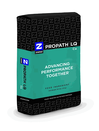 Zinpro ProPath LQ Cu (copper amino acid complex) is a nutritional liquid feed ingredient that contains organic copper and is versatile for a variety of species and diets (excluding sheep and other ovine species with copper sensitivities). This product is officially listed under the Organic Materials Review Institute (OMRI) and allowed for use in the production of organic foods (meat, milk, eggs, etc). Our trace minerals utilize our uniquely designed amino acid transport system to deliver greater efficiency and efficacy. Essential for superior animal health and performance, the benefits of supplementing copper as part of a well-balanced feeding plan include: